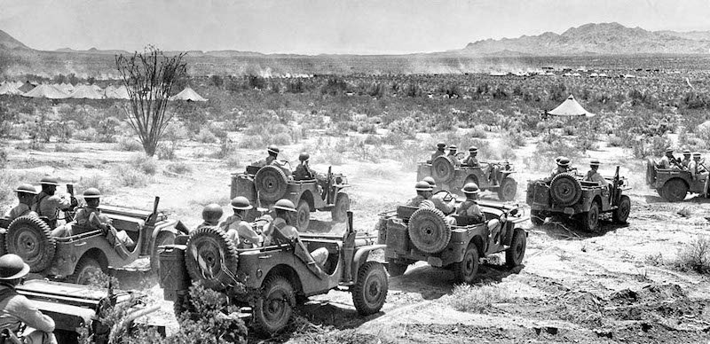 April. 20, 1942: US.Army troops during training in the California desert.