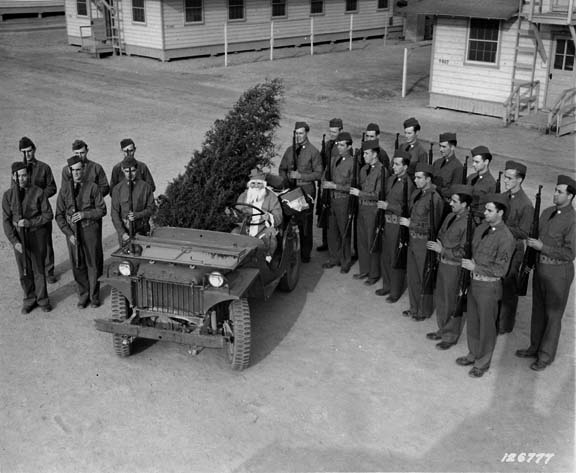 Willys MA with Santa at Camp Lee, Virginia, Quartermaster Replacement Center, Christmas 1941