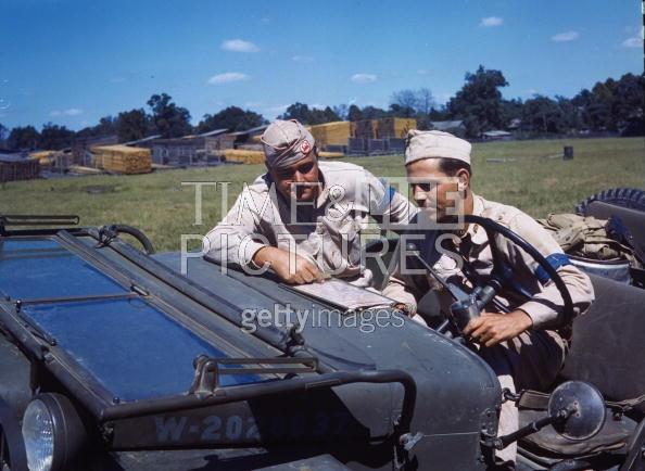 A US Navy yeoman and a member of the Women's Royal Naval Service sitting in a US Jeep marked with a Royal Navy license at the US Naval Operations Base. Location: Londonderry, United Kingdom. Date taken: 1942. Photographer: David E. Scherman. (Source: Life)