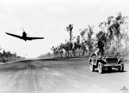 First jeep at Darwin. Photographer: Hodder, Ivan. Date taken: 1942. Ivan R. Hodder Collection. Description: First jeep at Darwin. Brought from Clark Field by B178 to Batchelor. (Source: Copyright owner: Northern Territory Library)
