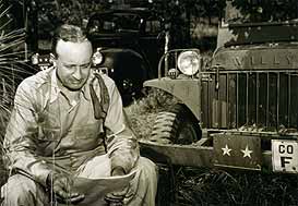 Major General Beightler consults a map next to his Willys Jeep during training maneuvers in 1941. (Source: Ohio Historical Society)